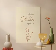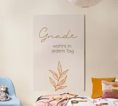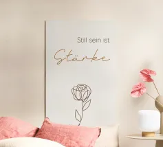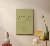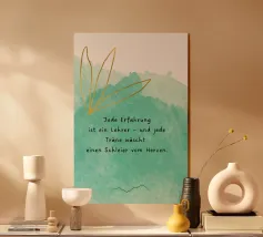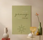 Un dolce promemoria pieno di amore per se stessi. Questo motivo porta pace interiore e accettazione nella stanza. I morbidi toni del verde hanno un effetto di radicamento e armonia, perfetto come promemoria quotidiano: sei abbastanza, così come sei.