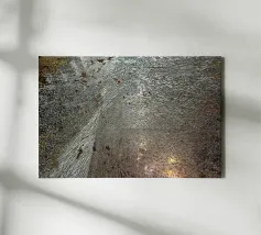 A sheet of glass shattered into a thousand pieces, creating a sort of kaleidoscope with many reflections.