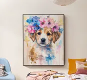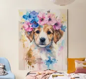 Questo design moderno raffigura un simpatico cucciolo con dei fiori sulla testa. Disegnato con delicati acquerelli e accenti dorati, unisce la bellezza naturale all'eleganza artistica. Le morbide sfumature di colore e lo stile astratto conferiscono a qualsiasi ambiente un'atmosfera romantica e giocosa, ma allo stesso tempo elegante: un vero e proprio colpo d'occhio per la vostra casa.