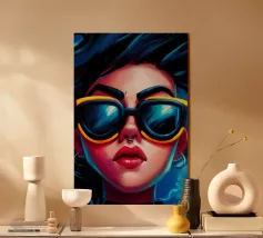 Un volto con occhiali da sole oversize e labbra aperte sembra fondersi nei colori, come se si sciogliesse nel calore. Le linee fluide in viola, rosa e giallo oro conferiscono al quadro un dinamismo surreale, mentre gli occhiali scuri creano una distanza misteriosa. In equilibrio tra freddezza e dissoluzione, questa rappresentazione cattura la natura fugace dell'identità e della percezione - un simbolo di transitorietà e di fusione con l'ambiente circostante.