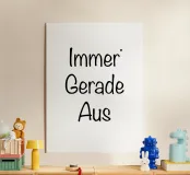 Immer Gerade Aus. Expression and typography in black and (transparent) white. You can change the background color. Minimalistic typography poster.