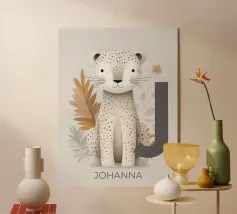Motiv für Kinder mit Initiale und Tier. Personalisierbare Illustration für das Kinderzimmer. Ideal als Geschenk.
