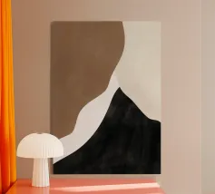 Forme astratte nei toni del marrone e del nero si scontrano e si sovrappongono per creare un senso di profondità e di intrigo. Le diverse tonalità suggeriscono un approccio minimalista, mentre le forme stilizzate invitano all'interpretazione e alla contemplazione individuale.