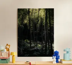 Natura allo stato puro. Dimenticate i prati ben curati: questa è la bellezza grezza e ricca di texture della foresta profonda. Con le sue ombre intense, i rampicanti pendenti e gli strati di verde smeraldo, quest'opera aggiunge immediatamente profondità e raffinatezza a una stanza. Porta l'esterno all'interno, ma mantiene vivo il mistero. Un'opera d'arte di grande impatto per gli amanti del lato più selvaggio della natura.