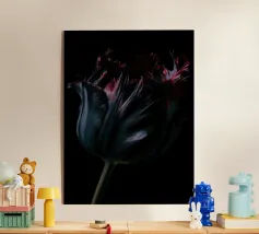 Questa splendida opera d'arte cattura la bellezza di un singolo iris nero in tutto il suo splendore. L'artista ha reso magistralmente gli intricati dettagli del fiore, dalla consistenza vellutata dei petali alle delicate venature delle foglie. I colori ricchi e scuri dell'iris contrastano magnificamente con lo sfondo morbido e tenue, creando un senso di drammaticità ed eleganza. Questo pezzo sarebbe un'aggiunta perfetta a qualsiasi casa o ufficio, aggiungendo un tocco di raffinatezza e stile.