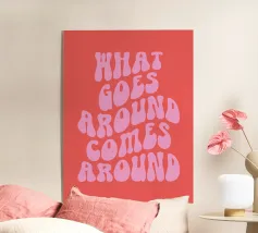 Design giocoso con foglie rosa su sfondo lilla e citazione scritta a mano "va e viene in onde - lo fa sempre" in un tenue color crema. Per tutti coloro che vogliono portare un po' di leggerezza e colore nella vita di tutti i giorni.