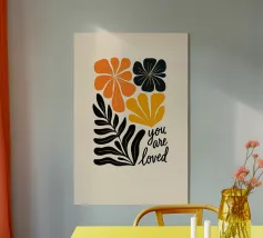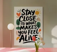 Elegante design retrò con foglie dai colori caldi e uno slogan ispiratore. Porta vibrazioni positive nella vostra casa - perfetto come decorazione o regalo.