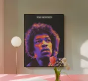 Una suggestiva immagine di Jimi Hendrix con vividi colori al neon, che mette in evidenza la sua espressione intensa e il suo stile iconico.