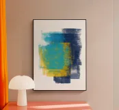 Indaco, oro giallo e turchese minimal, acrilico astratto.