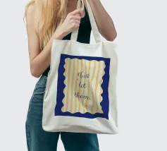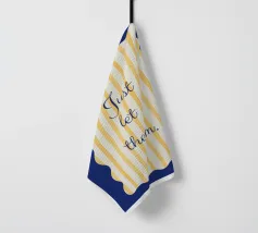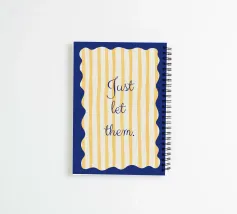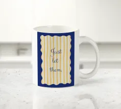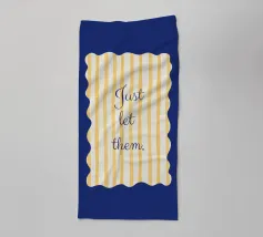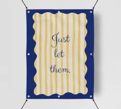 Blue and yellow design with yellow stripes and wavy corners.