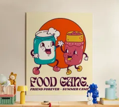 Three stylish popcorns dance on a brightly lit stage under the glowing “K-POP CORN” sign, wearing trendy outfits and showing off their attitude. This artwork combines the vibrant K-pop universe with the cute charm of popcorn characters, creating a fun and rhythmic scene. Perfect for K-pop fans, pop culture fans and anyone who loves creative and humorous prints.