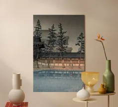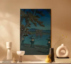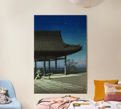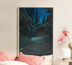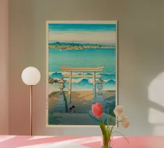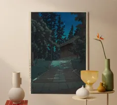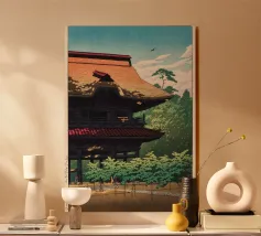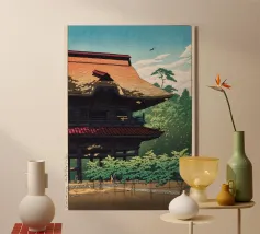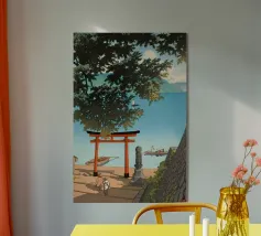 "Tōkyō Nijū Kei, Kanda Myōjin Keidai" di Kawase Hasui cattura lo spirito vibrante di Tokyo con una rappresentazione serena ma dettagliata dello storico santuario di Kanda Myōjin. Il magistrale gioco di luci e prospettive di Hasui evidenzia l'armonia tra l'architettura tradizionale e la natura circostante, creando un tranquillo paesaggio urbano. Perfetta per gli amanti dell'arte giapponese, dei paesaggi storici e delle stampe shin-hanga tradizionali, quest'opera aggiunge profondità culturale ed eleganza senza tempo a qualsiasi interno.