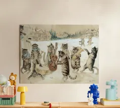 "Sono loro o i loro animali? Questa opera d'arte digitale intelligente e divertente riunisce una delle copertine di album rock più iconiche della storia della musica in un mash-up perfetto per gli amanti dei gatti. Sostituendo i leggendari membri della band con adorabili felini, l'opera d'arte gioca con l'idea che i nostri gatti sono le vere rockstar della nostra vita".