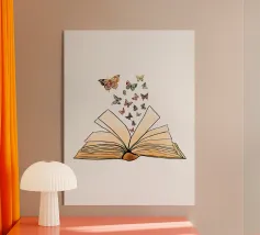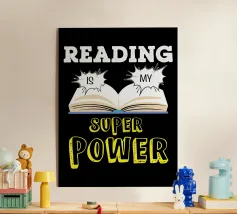 Un bambino è seduto e legge un libro sopra una grande matita, circondato da un arcobaleno colorato e da stelle. Le frasi "La conoscenza è potere" e "Apri un libro, apri la tua mente" sottolineano l'importanza della lettura e dell'istruzione.