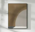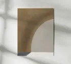 A minimalist abstract design features a large arc that transitions from a muted brown to a soft gray, with a subtle play of light and shadow. The composition is balanced by a lighter foreground, creating a calming visual effect.
