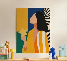 Un'illustrazione potente e serena che cattura il miracolo della nuova vita. In una stanza tranquilla, una madre in attesa tiene in mano una sfera luminosa, che simboleggia l'energia radiosa e la speranza che cresce dentro di lei. Il contrasto drammatico tra la luce calda e i toni freddi e scuri rende questa opera d'arte moderna e profondamente commovente.