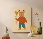 Add a soft, warm touch to your decor with this poster featuring a cute reindeer dressed in a red jumper and jeans and holding a kite.