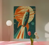 Lancio di un razzo retrò con Ringed Planet plexiglass