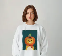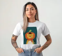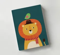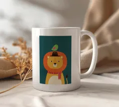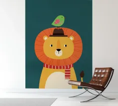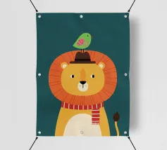 Illustrazione di un leone con un uccello sulla testa
