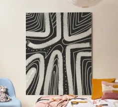 Questo affascinante design con linee curve nere su uno sfondo color crema ricorda le forme astratte delle onde. La composizione dinamica aggiunge energia ed eleganza moderna a qualsiasi ambiente. Perfetto per opere d'arte da parete, tazze, custodie per cellulari, cuscini e altro ancora, questo motivo conferisce un tocco artistico unico a qualsiasi spazio abitativo. Per gli amanti dell'arte minimalista e contemporanea, questo disegno è un elegante richiamo visivo e un regalo ideale per le menti creative.
