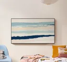 This minimalist torn paper composition captures the serene rhythm of sea and sand in layered, horizontal bands. Soft neutrals, gentle blues, and deep navy create an elegant coastal abstraction—perfect for modern spaces seeking a calm, shoreline aesthetic.