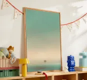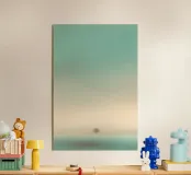 Un albero solitario si erge ai margini di un tranquillo paesaggio da sogno, dove il cielo di colore verde acqua si fonde con un orizzonte beige che sussurra. L'immobilità minimalista di quest'opera d'arte evoca solitudine, introspezione e la sottile forza della natura sospesa nel tempo.