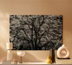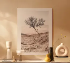 Albero solitario nel deserto del Sahara. Albero botanico solitario nel deserto. Fotografia in bianco e nero. Dune di sabbia e un albero. Fotografia di paesaggio e natura in Mauritania. Albero in Africa.