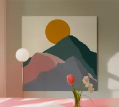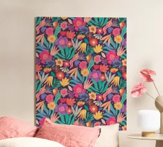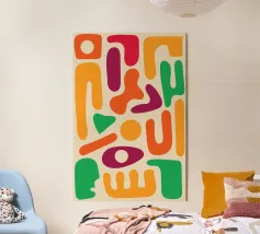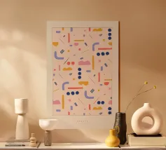 Questo disegno presenta una composizione astratta di linee e forme fluide in colori vivaci. Gli elementi sono disposti in modo armonioso e conferiscono al disegno un aspetto dinamico e giocoso.