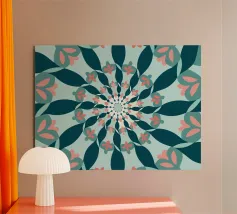 This illustration features a floral mandala with a modern style, using a combination of teal, dark blue, and pink colors. This illustration provides a harmonious and calming look.