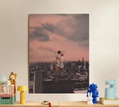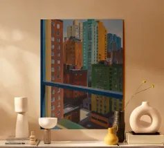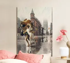 "Manhattan View" è un collage digitale che fonde la fotografia contemporanea con la grandiosità della pittura neoclassica. In quest'opera, diverse belle donne dell'epoca sono ritratte in cima a un grattacielo, affascinate dalla vista abbagliante di tutta Manhattan. I loro gesti e le loro espressioni interagiscono armoniosamente con l'ambiente urbano, evocando l'eleganza e l'eccitazione di un'epoca passata e celebrando al contempo la bellezza e il dinamismo della città moderna."