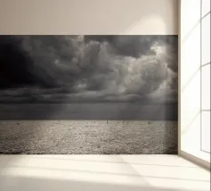 Mi piace il contrasto tra le minacciose nuvole invernali, la luce del sole sull'acqua e i windsurf all'orizzonte.