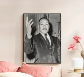 Questo suggestivo ritratto di Martin Luther King Jr. cattura la sua potente presenza e il suo spirito visionario. Conosciuto per la sua leadership nel Movimento per i diritti civili, egli simboleggia la giustizia, l'uguaglianza e la speranza. Quest'opera d'arte rende omaggio al suo messaggio duraturo di non violenza, coraggio e unità, che ha ispirato generazioni a sognare un mondo migliore e più giusto.