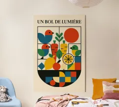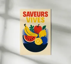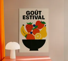 Con "Matière Sucrée", la frutta diventa una festa. Forme semplici, colori vivaci e una composizione vibrante e pop: questo poster sprizza gioia grafica da tutti i pori. Si intravedono un'arancia, una pera, un mango, un limone... ma soprattutto si percepisce l'energia pura del colore e la dolcezza dello zucchero. Ideale per risvegliare una parete, una mattina, uno stato d'animo. È la vita in piena saturazione.