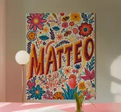 Eines der beliebtesten Namen, International,- im Design das bunte, farbenfrohe Energie ausstrahlt