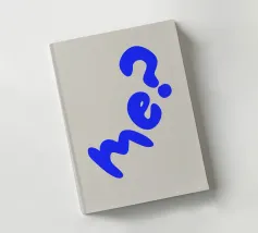Bold, playful and unapologetically modern. “Me?” is a typographic statement that plays with scale, rotation and confident color contrast. Set in vibrant cobalt ink against a warm greige backdrop, this design balances attitude with refinement.