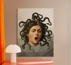Two versions of Medusa were created by the Italian Baroque painter Michelangelo Merisi da Caravaggio, one in 1596 and the other in ca. 1597. Both depict the moment from Greek mythology in which the Gorgon Medusa is killed by the demigod Perseus, but the Medusas are also self-portraits. Due to its bizarre and intricate design, the painting is said to display Caravaggio's unique fascination with violence and realism.