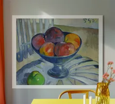 Un'affascinante natura morta del maestro impressionista Claude Monet, che mette in mostra la tranquilla eleganza degli oggetti quotidiani Presenta una disposizione rustica di mele e uva su un tavolo rivestito di bianco, immerso in una morbida luce naturale Cattura la bellezza fugace della frutta matura con pennellate sciolte e tonalità calde e autunnali Un'opera intima che si discosta dai famosi paesaggi di Monet e che è stata dipinta in casa durante il maltempo. Un'opera d'arte senza tempo e rilassante, perfetta per cucine, sale da pranzo o qualsiasi altro interno accogliente Regalo ideale per gli amanti dell'arte, per i cuochi o per chi apprezza l'estetica rustica e la natura morta