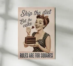 Vi presento il mio design di ispirazione retrò "Mental Cakedown"! Caratterizzato da torte vivaci e stravaganti in un giocoso design vintage, questo poster è perfetto per aggiungere un tocco divertente e nostalgico al vostro spazio. Ideale per cucine, caffè o chiunque abbia bisogno di un dolce promemoria per concedersi un trattamento mentale e letterale.