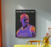 Un ritratto colorato al neon di un giocatore di basket in maglia Bulls con la citazione "You are your only limit", che simboleggia determinazione e fiducia in se stessi.