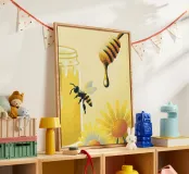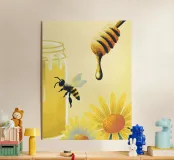 La dolcezza della natura in ogni dettaglio! Questo disegno raffigura api che raccolgono nettare e miele deliziosi.