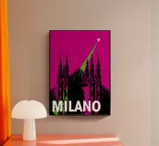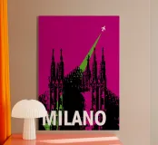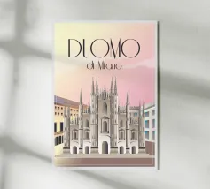 Poster retrò. Milano, Italia, cattedrale, chiesa, vintage, retrò, arte grafica, città, viaggio, illustrazioni, vacanza, aereo, pop art, ufficio, camera dei bambini, soggiorno, camera da letto, cucina, rosa, verde, nero bianco