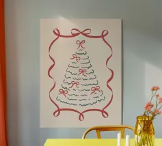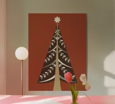 Un albero di Natale minimalista dal carattere festoso: sottili linee rosse su uno sfondo rosso intenso creano una silhouette moderna ed elegante. Questo disegno è perfetto per chi ama le decorazioni natalizie semplici, eleganti e artistiche. Combina calore e tranquillità - ideale per il soggiorno, il corridoio o come sottile dichiarazione stagionale sulla parete.