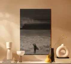 Fotografia decorativa di onde sulla costa portoghese. Onde artisticamente fotografate in bianco e nero, un regalo semplice e perfetto per chi ama il mare aperto e il surf.