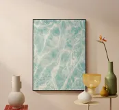 Scoprite la magia di questa stampa d'arte mozzafiato con motivi d'acqua, che cattura l'ipnotico gioco di luce e acqua. Le morbide tonalità del blu, insieme agli incantevoli motivi dei riflessi, conferiscono un senso di tranquillità ed eleganza a qualsiasi ambiente.