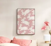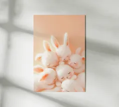 Incantevoli illustrazioni di coniglietti bianchi su uno sfondo rosa tenue, perfette per progetti simpatici e giocosi.