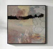 Opera d'arte moderna e astratta con giochi di forme e texture in toni di colore tenui come beige, giallo tenue, blu-grigio, marrone-rosso e con una linea di pennello nera. Le diverse forme organiche, le linee, le texture e le pennellate conferiscono un aspetto interessante che attira l'attenzione. Per una vita bohémien, new country, basic, industriale, naturale e scandinava. Arricchite i vostri interni con questa creazione versatile, che aggiunge un'espressione estetica artistica al vostro spazio abitativo.