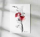 schizzo, disegno, papavero, erbe, acquerello