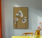"Momo no.1" combines delicate, hand-drawn flowers with an earthy, modern background tone. The motif is both minimalist and organic - like a small poetic moment in the midst of everyday life. The soft line work meets warm areas of colour and makes this design a calm, elegant eye-catcher for living rooms, studios or creative workspaces. Natural and timeless, with a touch of vintage charm.
