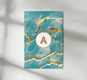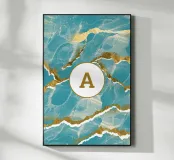 Un elegante disegno personalizzato con l'iniziale prescelta in un elegante effetto marmo con toni tropicali verde acqua e accenti dorati scintillanti. Elegante, moderna e senza tempo, questa opera d'arte è un regalo perfetto o una dichiarazione unica per la vostra casa. Aggiungete la vostra iniziale per creare un pezzo unico che unisce la raffinatezza a un tocco di glamour.