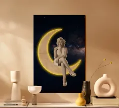 Moonwatcher is a thought-provoking wall art piece that delves into themes of love, connection, and the passage of time.
